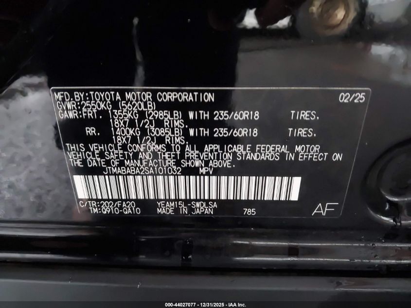 - Vin: JTMABABA2SA101032