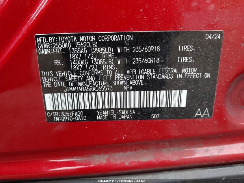 - Vin: JTMABABA5RA065573