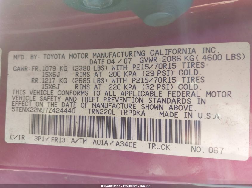 - Vin: 5TEHN72N04Z458407