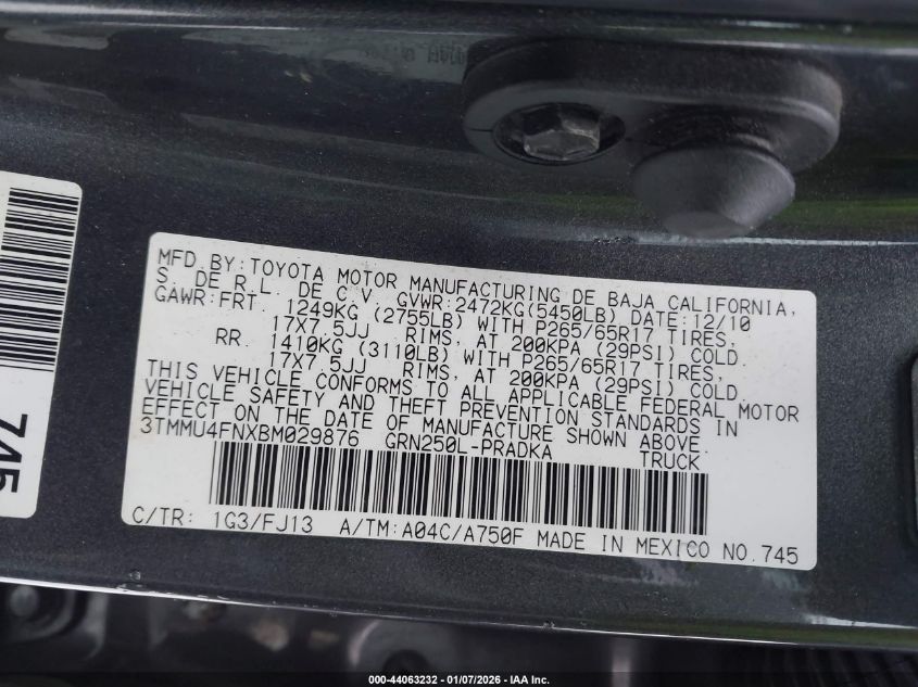 - Vin: 3TMMU4FNXBM029876
