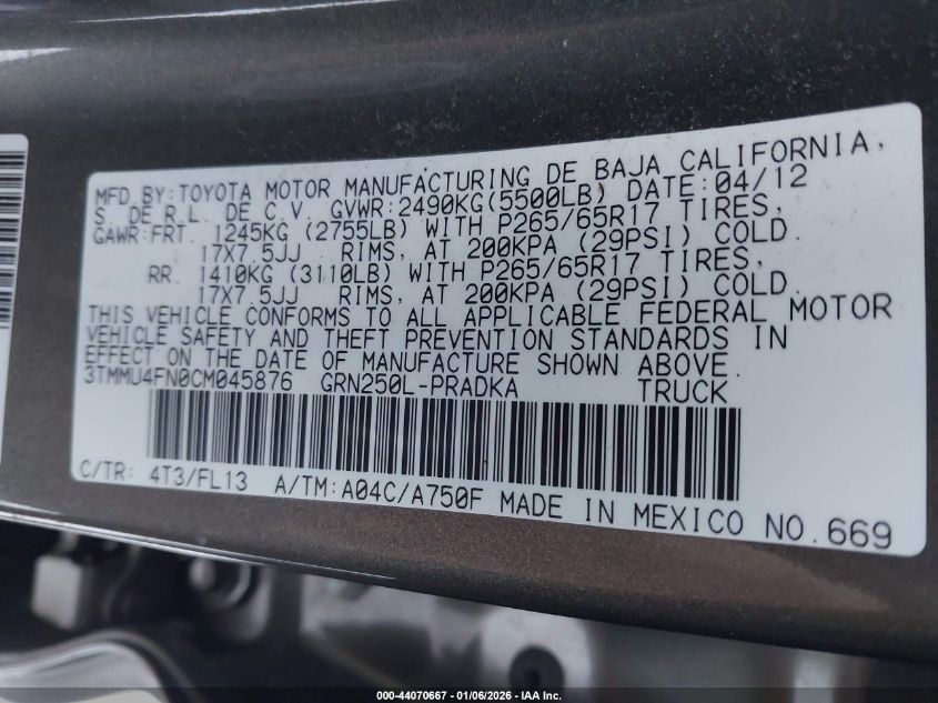 - Vin: 3TMMU4FN0CM045876