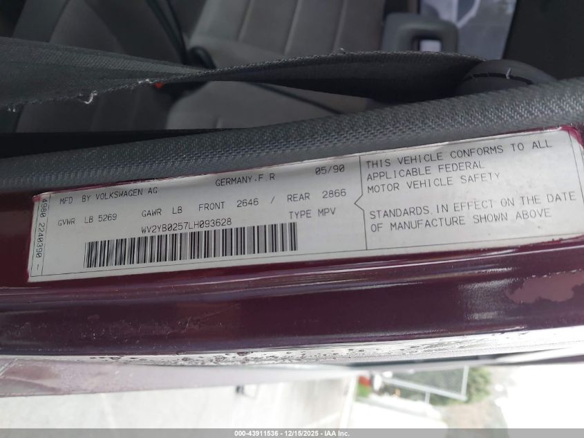 - Vin: WV2YB0257LH093628