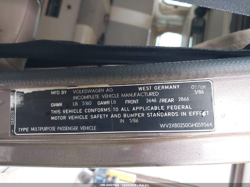 - Vin: WV2XB0250GH059564