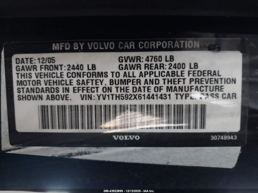 - Vin: YV1TH592X61441431