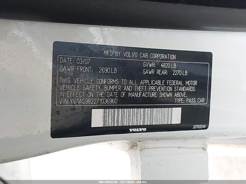 - Vin: YV1AS982271036960