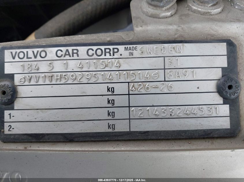 - Vin: YV1TH592951411514