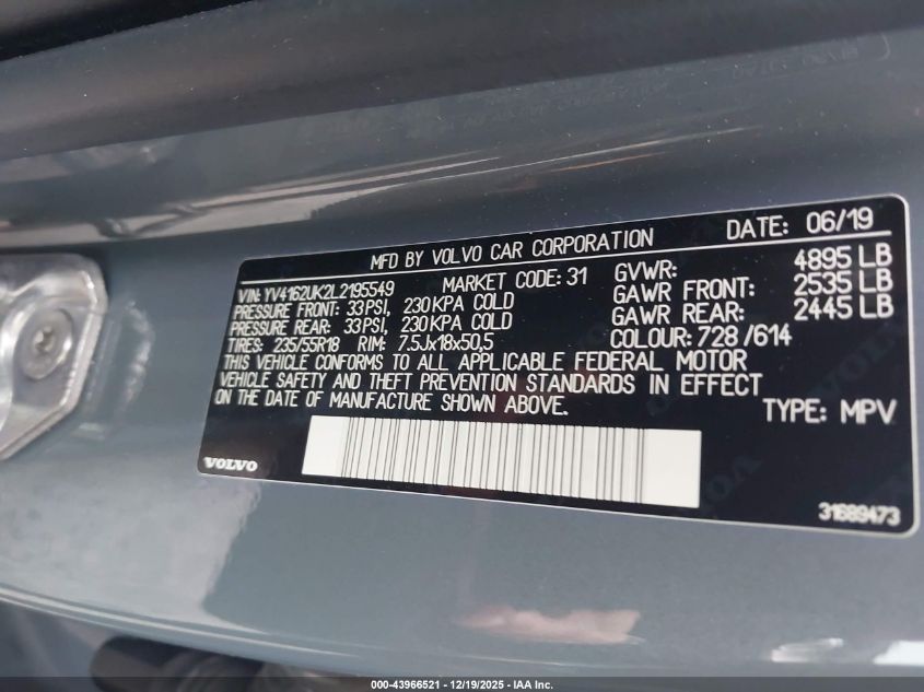 - Vin: YV4162UK5L2252164