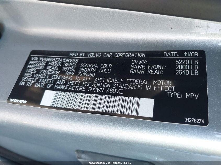 - Vin: YV4960BZ7A1081055