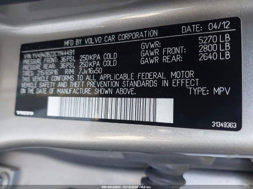- Vin: YV4940BZ2C1144491
