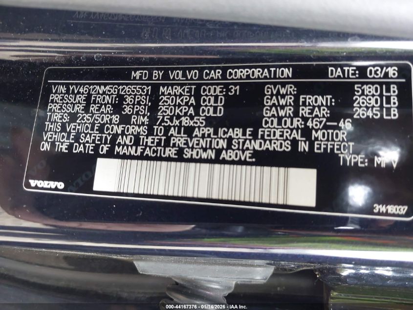 - Vin: YV4612NM5G1265531